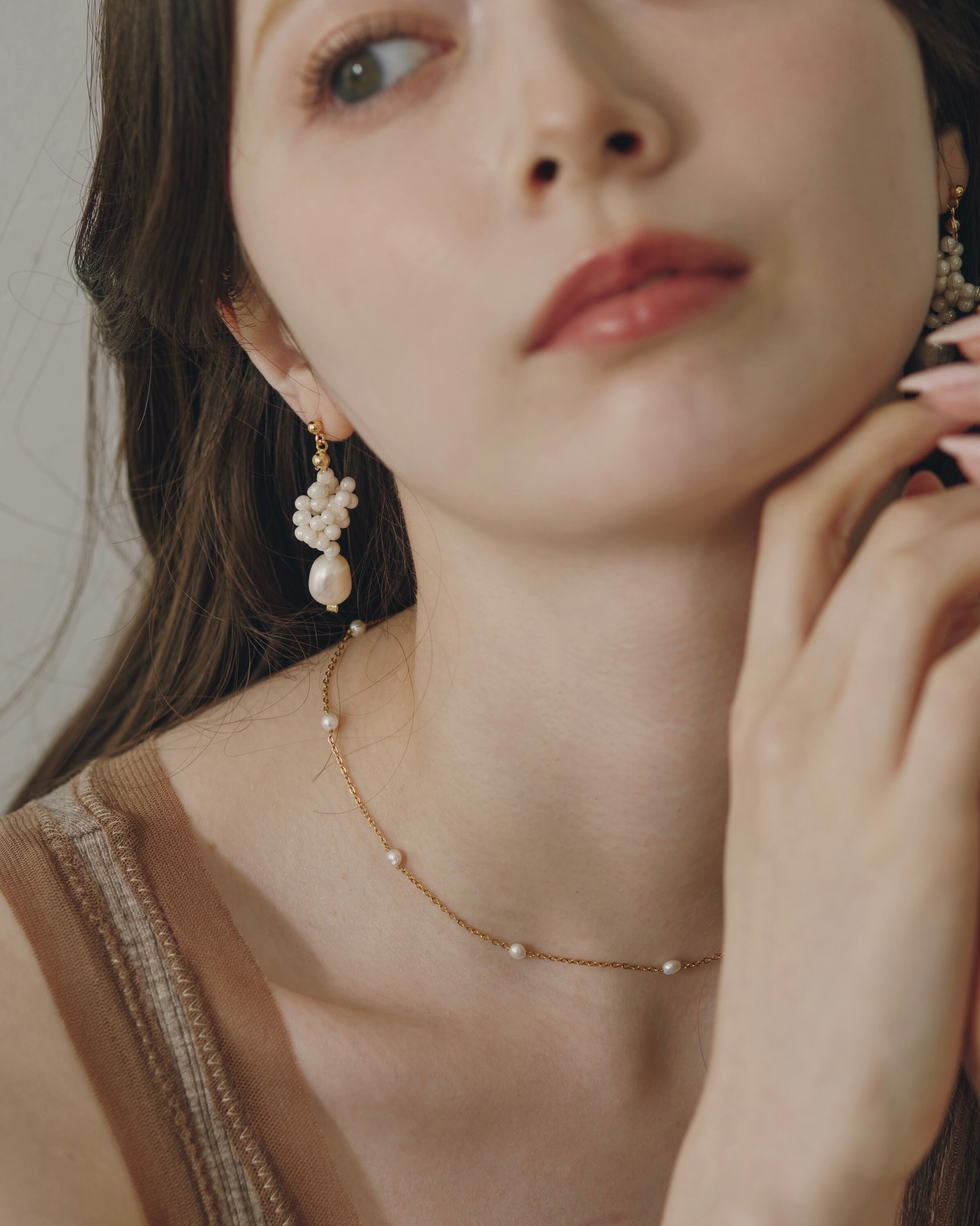 天然パールならではのやわらかな艶と少しだけいびつなかたちが、かしこまりすぎない自然な表情を添えてくれます。